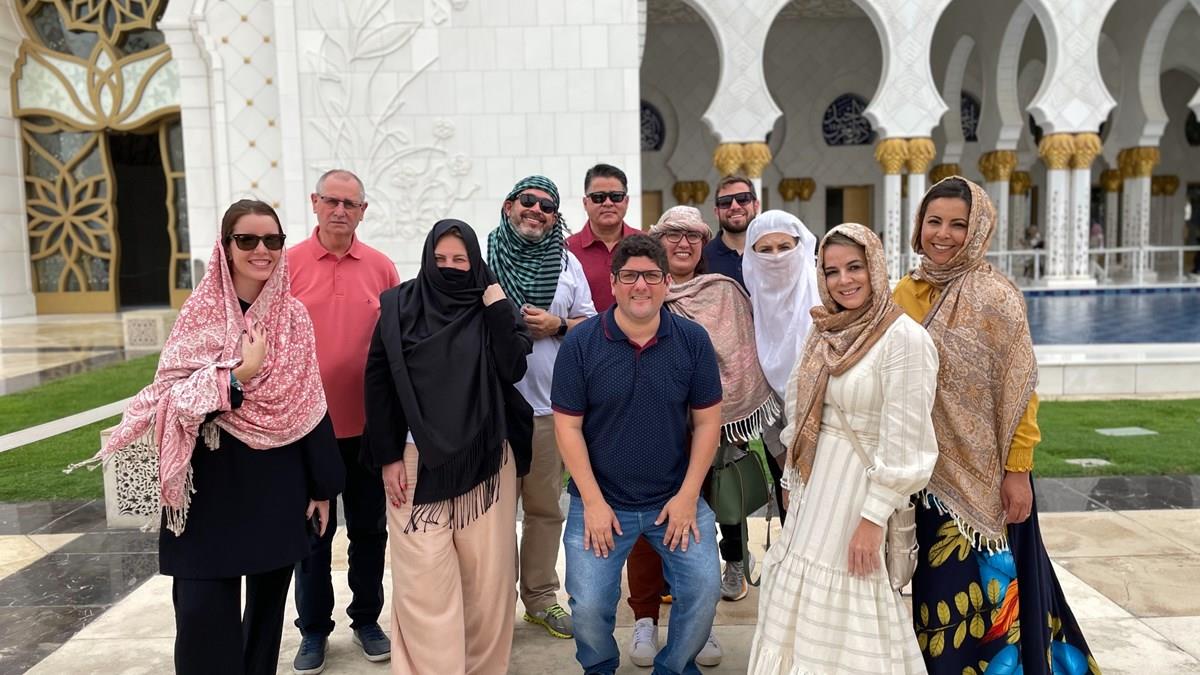 Para a visita, os integrantes da caravana usaram roupas apropriadas e ouviram a história da construção do complexo, que é a maior mesquita do país.