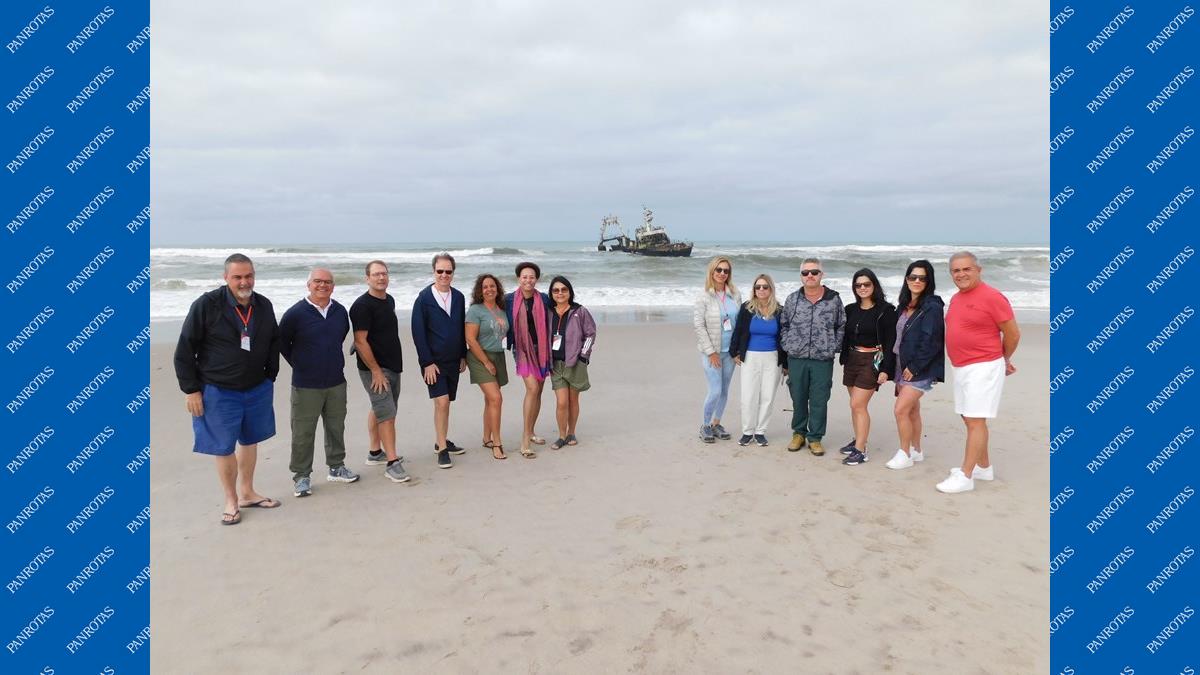 NAMÍBIA - O diretor da Flot, Eduardo Barbosa, definiu o último sábado (22) como um dia de experiências fantásticas na Namíbia. Pudera, pois os 11 agentes de viagens que Barbosa leva ao país africano num famtur, com o receptivo da Gondwana, observaram baleias, focas, pelicanos, cormorões e flamingos nos passeios de catamarã e carro.
