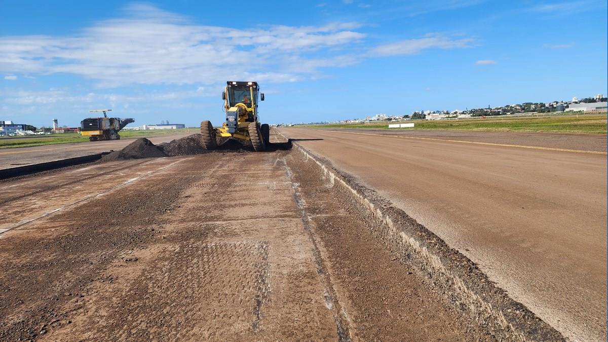 Nesta fase, já foram concluídas importantes etapas, como a fresagem e repavimentação da taxilane do Pátio 1 e da taxiway M4, além da fresagem de 1,2 mil metros da pista de pouso e decolagem e da taxiway F. Atualmente, as equipes estão concentradas na fresagem da taxiway D. Após essa fase, será aplicada a pintura de ligação, que assegura a aderência entre a base e as novas camadas de asfalto que restabelecerão a altura original da pista.
