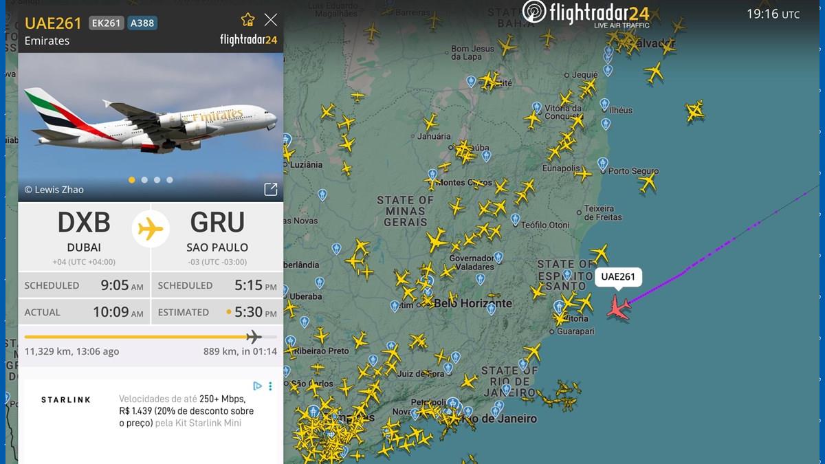 Companhias aéreas locais, como Emirates, Etihad, Flydubai e Air Arabia já cancelaram ou redirecionaram voos, mas no site oficial da Emirates ainda não informações sobre cancelamentos de voos ao Brasil. O voo EK262, por exemplo, chegou normalmente à Dubai nesta segunda-feira (23), pousando 23h03 (hora local), e o voo EK261 chega hoje em Guarulhos por volta de 17h30.