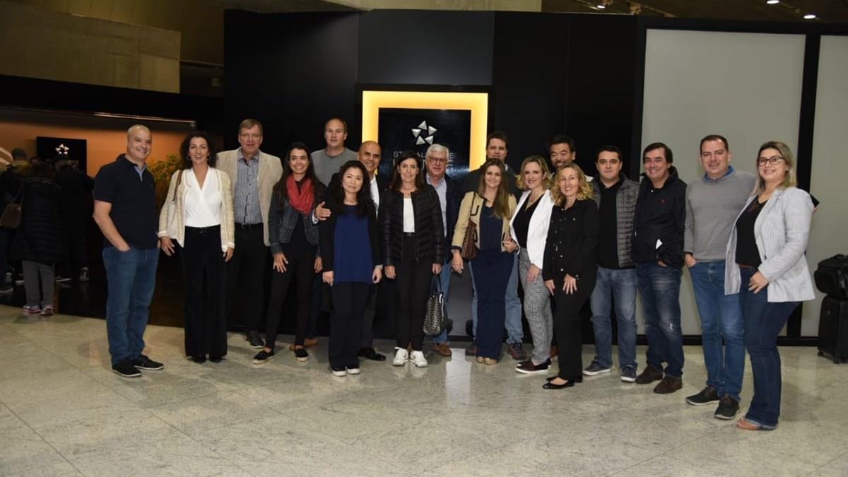 O grupo está acompanhado pelos gerentes de Vendas, Guilherme Dal Secco e Anthony Mota; a gerente de Marketing, Jacqueline Conrado; a coordenadora de Marketing, Monica Reis; e a gerente de Desenvolvimento de Novos Negócios, Ivone Gouvea. Parte do grupo se encontrou na sala vip da Star Alliance e embarcaram a bordo da United Polaris, a nova classe executiva da companhia.