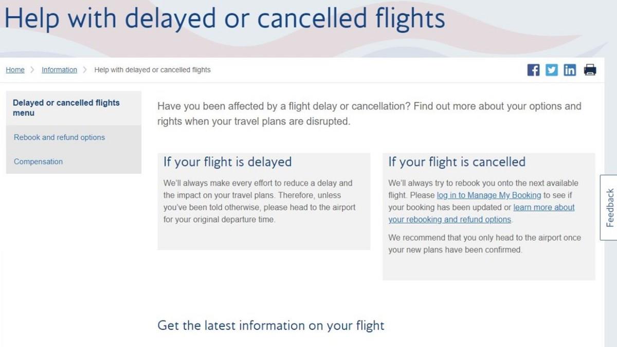 Dentro das possibilidades de compensação, por exemplo, a British Airways elencou itens como acomodação em hotel, transfers hotel-aeroporto, refeições e bebidas, e ainda duas chamadas telefônicas ou custos relacionados à internet para entrar em contato com pessoas fora do aeroporto.