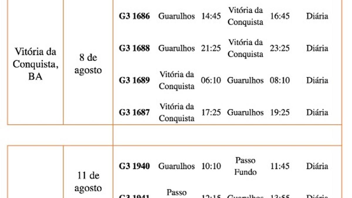 HORÁRIOS DOS NOVOS VOOS GOL