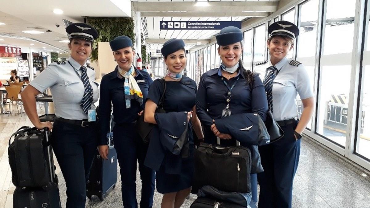 Segundo divulgado pela própria aérea, a Azul é a empresa com maior mulheres pilotos - 60, no total. Além disso, mais da metade do quadro de comissários de bordo é feminino.