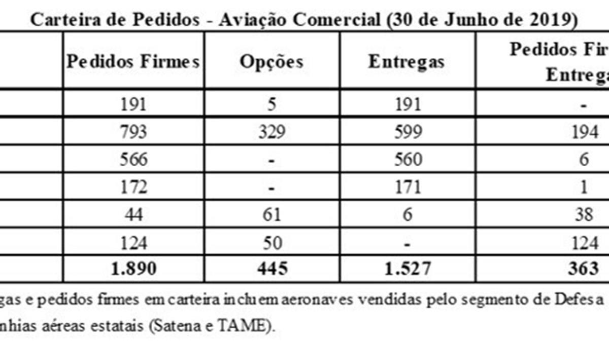 A carteira de pedidos da aviação comercial (até 30 de junho de 2019)