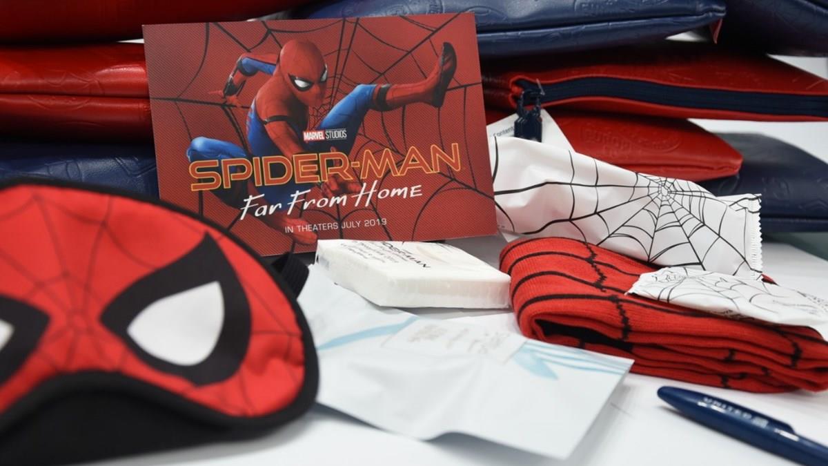 Com mais de US$ 600 milhões arrecadados nos cinemas mundiais, e apenas começando sua exibição, Homem Aranha Longe de Casa já é sucesso também no Brasil. E desde o mês passado, o super-herói amigão da vizinhança é também estrela dos vídeos de segurança a bordo dos voos da United Airlines, estando presente também em painéis nos aeroportos americanos, e nos itens da necessaire distribuída aos passageiros da classe United Polaris. Item de colecionador e cobiçada pelos fãs da Marvel e do teioso, a necessaire tem as versões vermelha e azul e está toda tematizada com desenhos e logos do Homem Aranha.