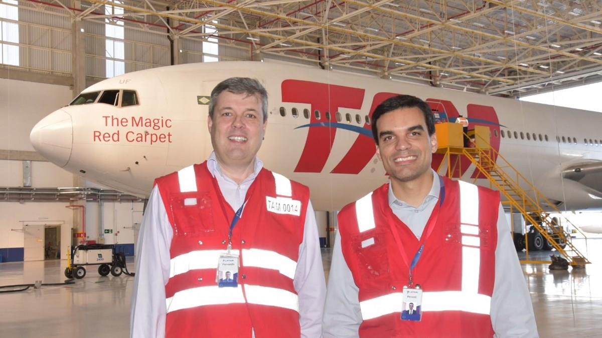 O gerente sênior de Manutenção da Latam Airlines Brasil, Fernando Almirall, e o diretor de Manutenção da empresa, Alexandre Peronti