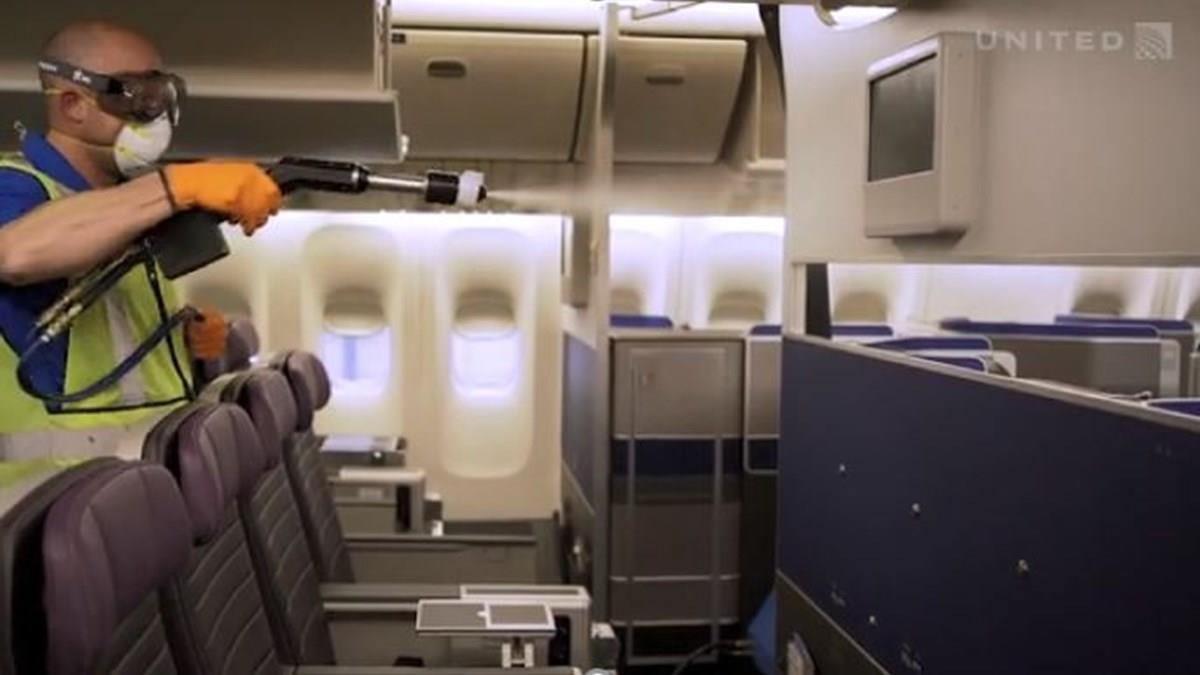 A United também utiliza nebulizadores eletrostáticos para desinfetar o ar e as superfícies dentro da cabine de todos os voos internacionais nos centros de conexão nos Estados Unidos.