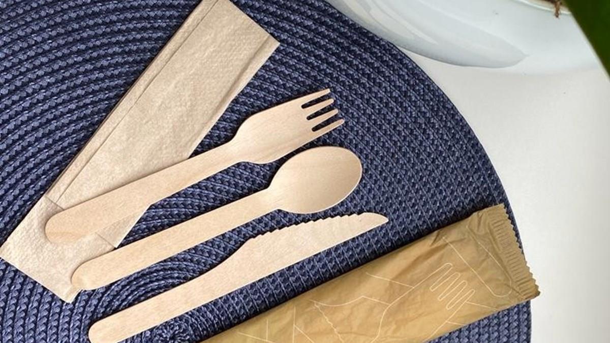 Feito de madeira, o Eco Kit Talheres chega para substituir os modelos de plástico, em uma iniciativa que reduz o impacto ambiental no descarte de resíduos. A expectativa da empresa é de que 16 toneladas de plástico deixem de ser devolvidas ao meio ambiente. O kit contém guardanapo, garfo, faca, colher, lenço higiênico e sal e pimenta.