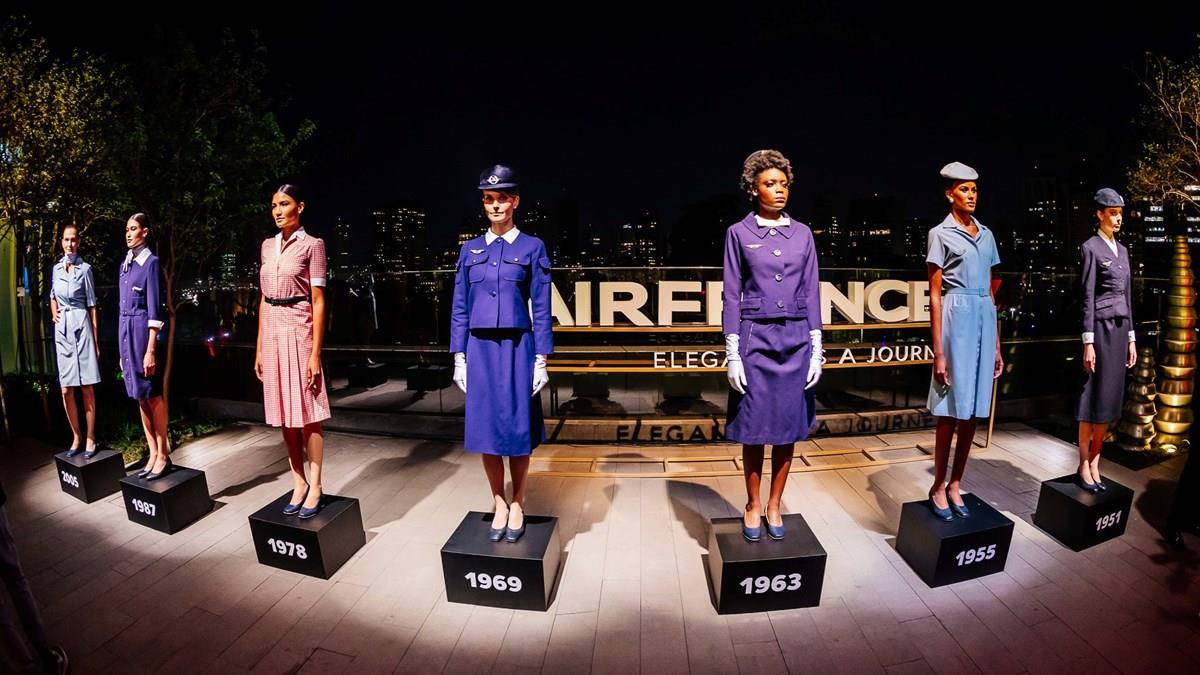 A companhia aérea francesa exibe looks usados a bordo ao longo de quase 90 anos