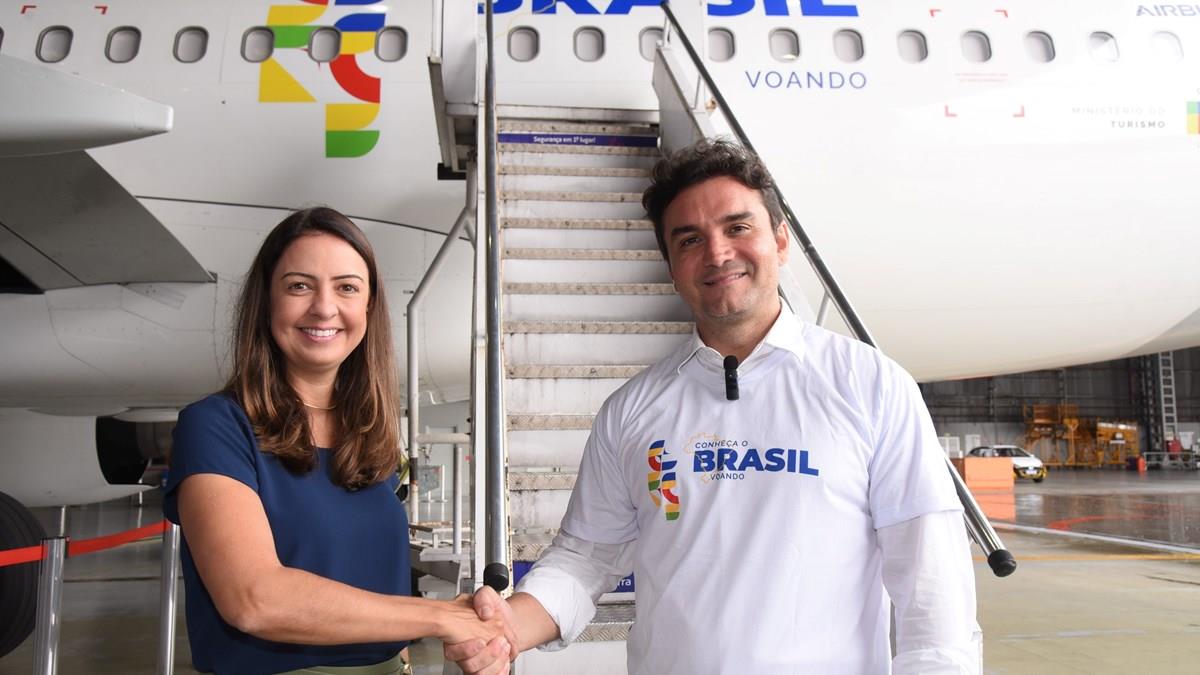 Nesta segunda-feira (19), a Latam foi a terceira companhia aérea – após Gol e Azul – a revelar sua aeronave tematizada com a campanha “Conheça o Brasil: Voando”, do Ministério do Turismo em parceria com Ministério de Portos e Aeroportos e Abear. A iniciativa tem como meta aumentar as viagens aéreas no Brasil por meio da promoção de destinos nacionais e da compra antecipada de passagens aéreas.