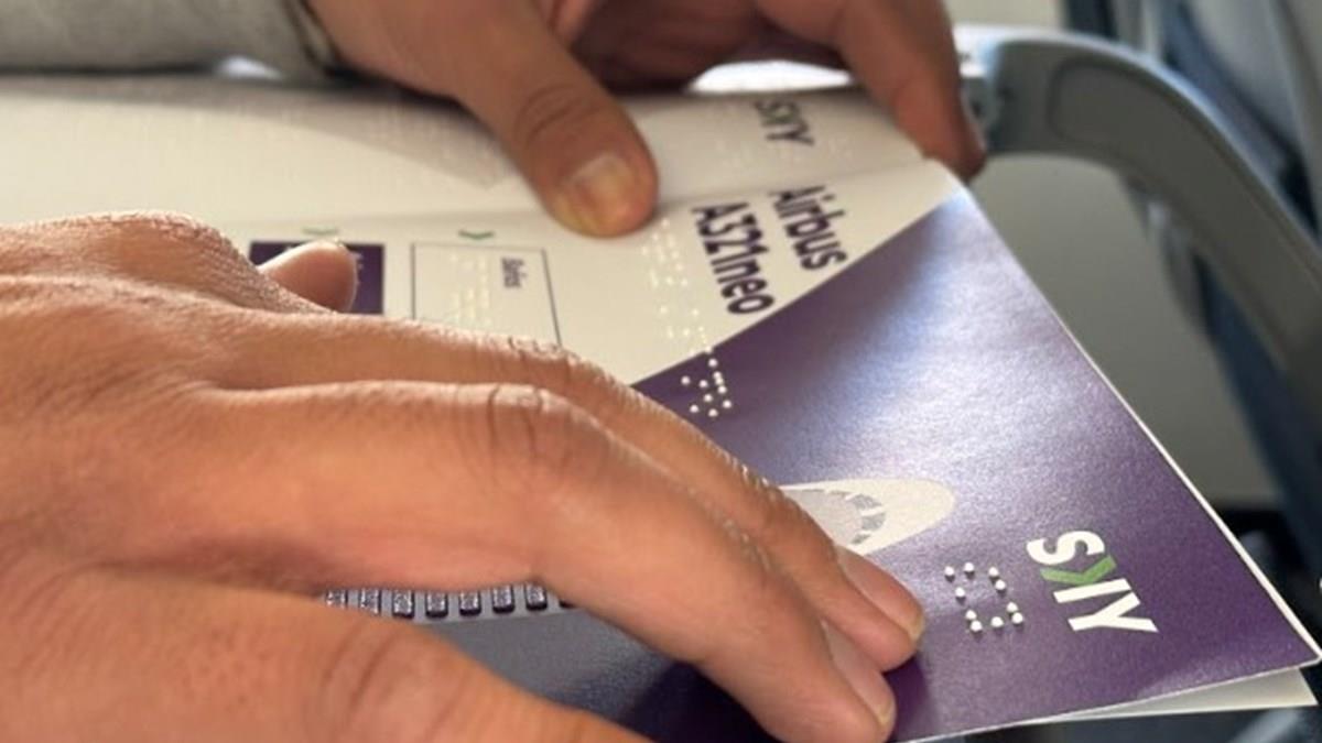 Desde 1º de julho, todos os aviões da Sky Airline contam com um guia de informações úteis em braile para pessoas com deficiência visual. A cartilha está disponível em braile tanto em espanhol quanto em inglês.