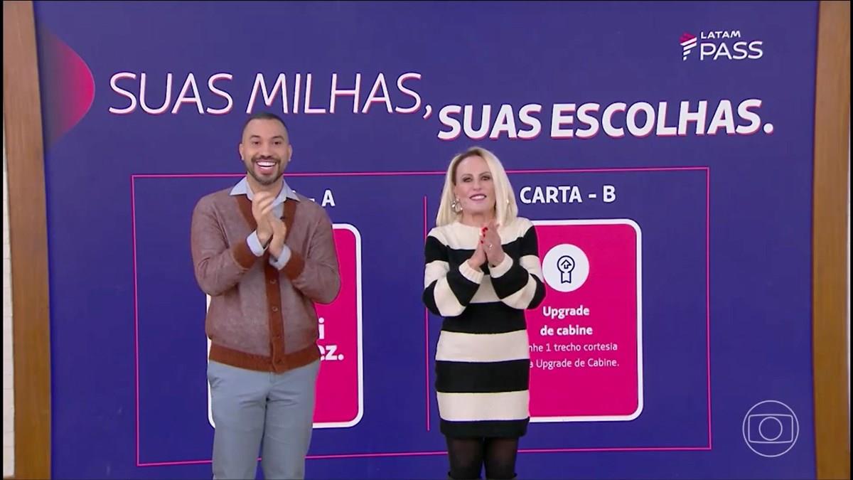 No formato de um “game” ao vivo, Ana Maria Braga recebeu, na estreia do quadro, o economista Gil do Vigor como parceiro de desafio. Juntos, os dois interagiram com o público e participaram de dinâmicas que exploram de forma lúdica os principais diferenciais do novo Latam Pass.