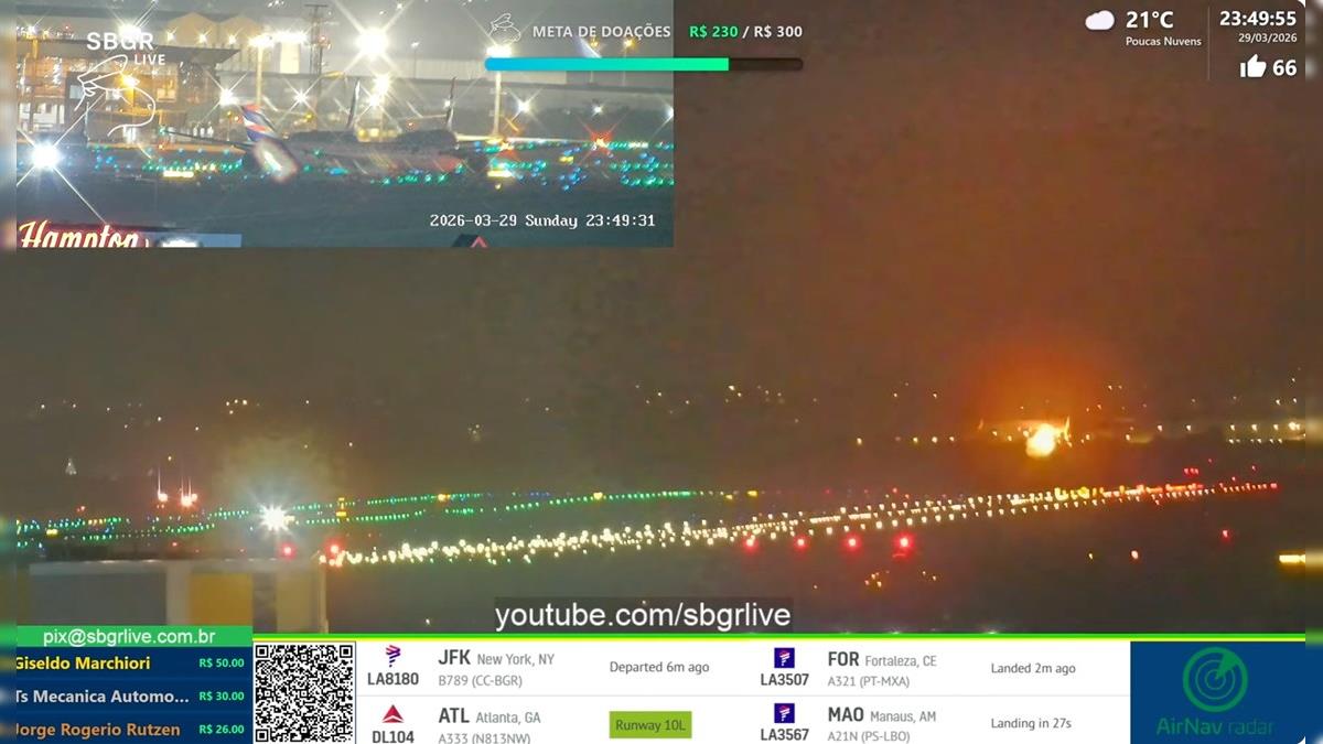 Um voo da Delta Air Lines com destino a Atlanta precisou retornar ao Aeroporto de Guarulhos, na noite de domingo (29), após uma falha no motor esquerdo poucos segundos depois da decolagem. O Airbus A330-300 declarou emergência (mayday) e pousou em segurança nove minutos depois sem feridos.