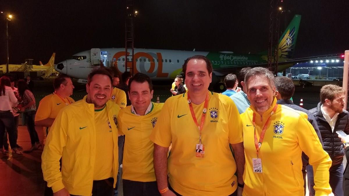 "Foi a forma que encontramos de unir duas de nossas maiores paixões: aviação e futebol. Então convidamos pessoas especiais e importantes, como nossos clientes, para torcer e vibrar com a gente durante o jogo da seleção brasileira", destaca o profissional.