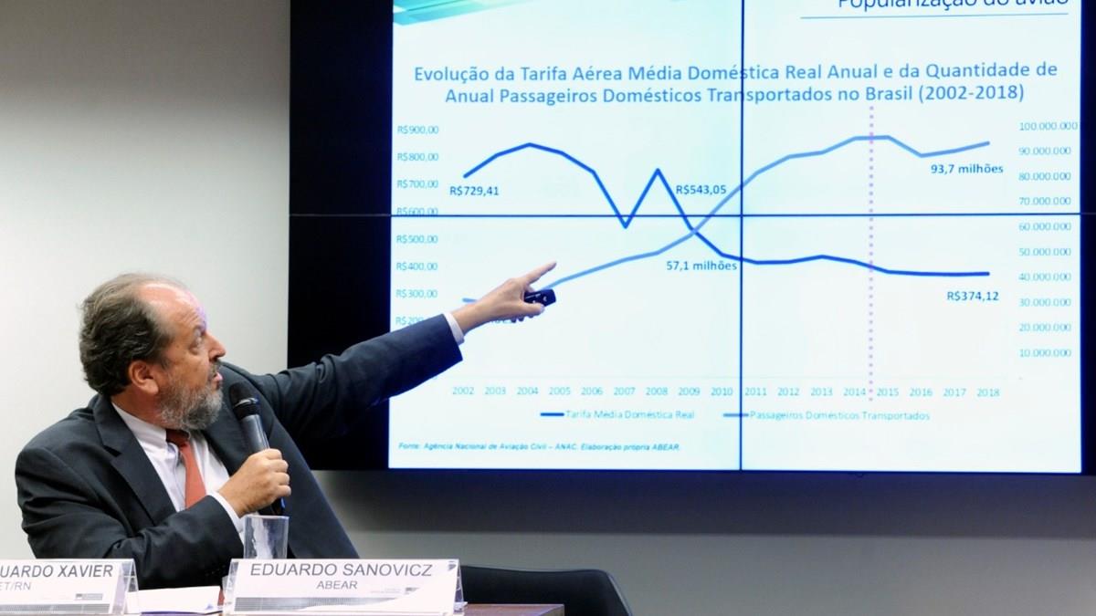 “O ambiente da liberdade de mercado proporcionou o ápice do nosso crescimento na virada do século 21. Mas não podemos defender esse modelo somente quando estamos crescendo e voltar atrás quando a economia fica estagnada”, pontuou o presidente da Abear, Eduardo Sanovicz. O equilíbrio da legislação brasileira com os padrões internacionais foram considerados primordiais. Ele lembrou, ainda, que mais da metade dos custos da aviação depende do dólar, sendo 31% apenas para o combustível.