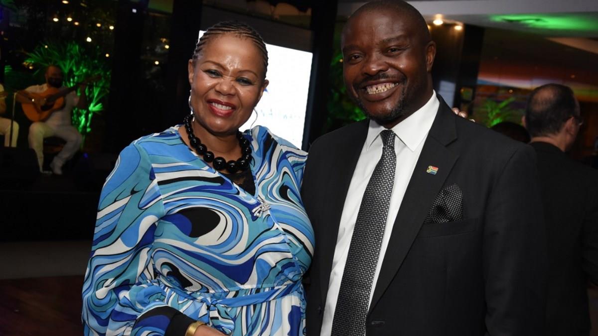 A CEO da SAA, Zuks Ramasia, com o embaixador da África do Sul, Joseph Mashimbye