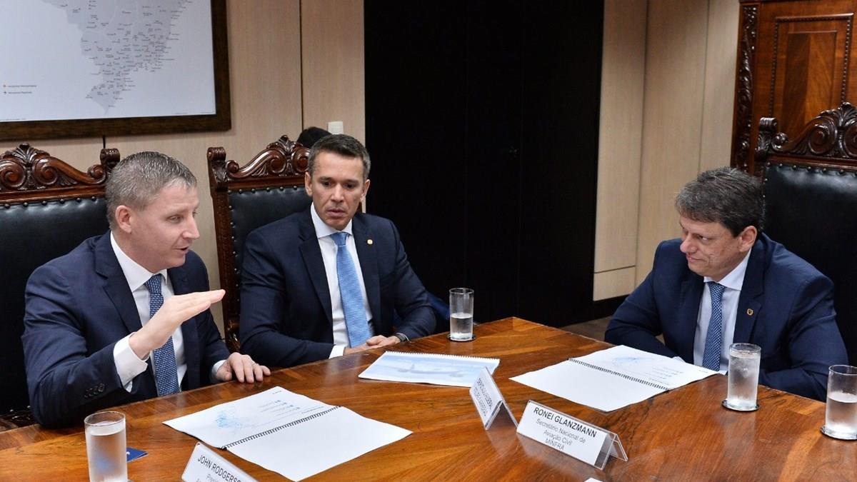 John Rodgerson (CEO da Azul), Felipe Carreras (deputado federal-PSB) e Tarcísio Freitas (ministro da Infraestrutura)