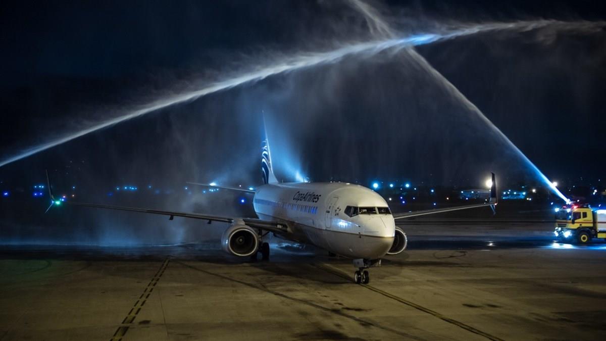 Com a presença de executivos da Copa e autoridades relacionadas ao Turismo da região, a inauguração teve corte de faixa no portão de embarque e batismo da aeronave. O Boeing 737-800 operado pela empresa panamenha foi saudado por canhões de água do Corpo de Bombeiros antes de se acoplar ao finger do terminal.