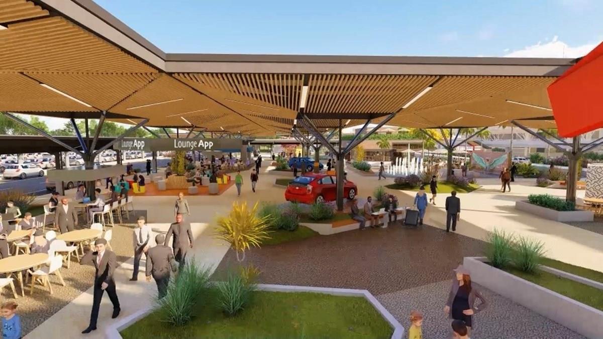Perspectiva da Praça Pick-Up, que está sendo construída em frente ao Aeroporto de Brasília