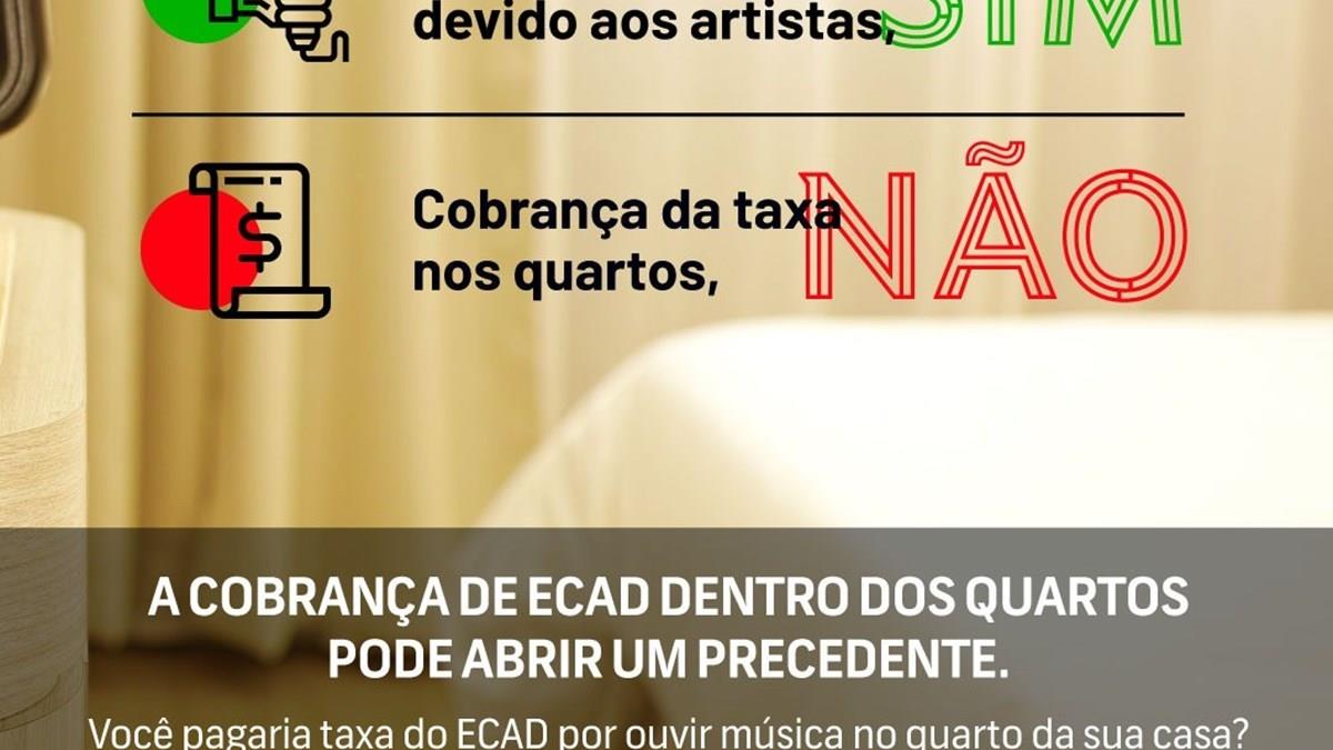 As entidades consideram injusta a cobrança nos quartos de hotel da taxa de Ecad, que recolhe direitos autorais para artistas, já que rádios, aplicativos e emissoras de TV já recolhem essa taxa exatamente para que o consumidor possa ouvi-las em lugares como os quartos de hotel.