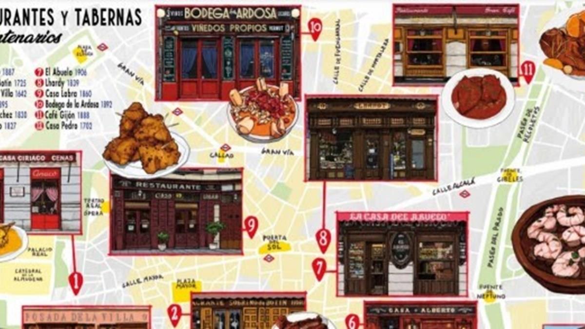 Os restaurantes (e anos de fundação) reconhecidos foram: Bodega de la Ardosa (1892), Restaurante Botín (1875), Café Gijón (1888), Casa Alberto (1827), Casa Ciriaco (1887), Casa Labra (1860), Casa Pedro (1825), La Casa del Abuelo (1906), Lhardy (1839), Malacatín (1895), Posada de la Villa (1642), Taberna Antonio Sánchez (1787), La Bola (1870), Oliveros (1857) e Los Galayos (1894).