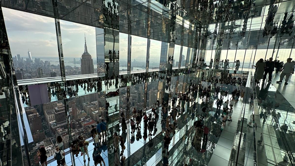 O primeiro grande impacto é na sala de espelhos, que te coloca dentro de um cenário inusitado (como no filme A Origem, de Christopher Nolan) e incrível. Dá para ficar horas na sala, olhando os reflexos, movimentos e imagens que se mesclam à paisagem. O Empire State faz parte dessa paisagem, assim como, mais distante, o One Observatory, e Downtown.