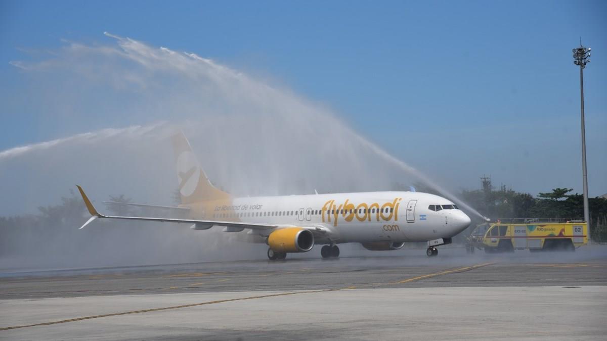 A companhia de baixo custo argentina Flybondi iniciou suas operações no Brasil na manhã desta sexta-feira (11). A empresa estreou com a rota que liga o Aeroporto de El Palomar, em Buenos Aires, ao Aeroporto Internacional Tom Jobim, no Rio de Janeiro. Sem escalas, a ligação faz da capital fluminense, segundo a empresa, um meio mais prático e rápido de transportar brasileiros à Argentina.