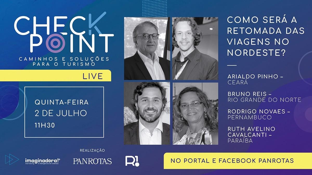 O Check Point é uma parceria da PANROTAS e Imaginadora, com apoio da R1. Não perca nosso bate papo com os secretários de Turismo no Nordeste, ao vivo, no Portal e Facebook PANROTAS, hoje, quinta-feira, 2 de julho, às 11h30. Não é preciso link ou inscrição prévia. É só entrar e participar.