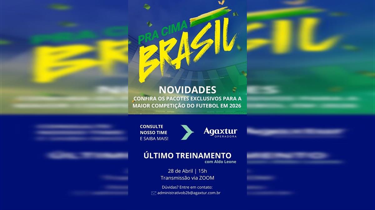 A demanda por viagens para a Copa do Mundo de 2026 ganhou força nos últimos dias, refletindo o interesse crescente de brasileiros em acompanhar o torneio presencialmente nos Estados Unidos, Canadá e México. O movimento ocorre às vésperas do último treinamento da Agaxtur sobre o evento, que será realizado nesta terça-feira (27), às 15h (horário de Brasília), via Zoom.
