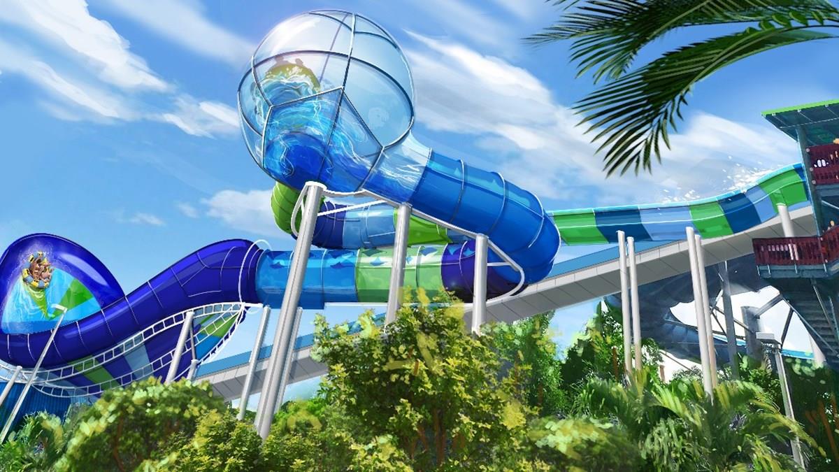 Ray Rush, eleita melhor nova atração aquática do ano, conta com redoma e tobogã em formato de arraia em seu trajeto