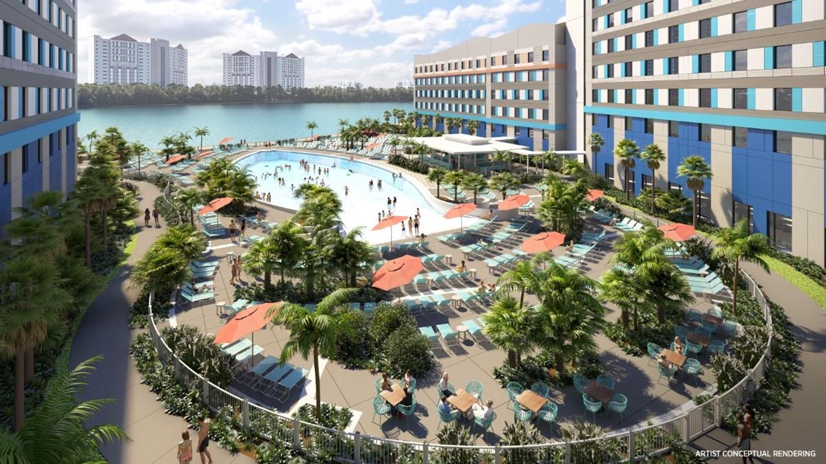 O mundo do surfe é a inspiração para o Surfside Inn and Suites, que inaugura no dia 27. Serão 750 quartos, sendo 390 deles suítes duplas para até seis pessoas