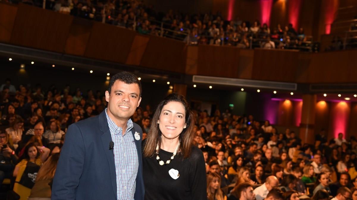 Renato Gonçalves e Gabriella Cavalheiro, da Universal Parks, fizeram evento para quase 700 agentes em São Paulo