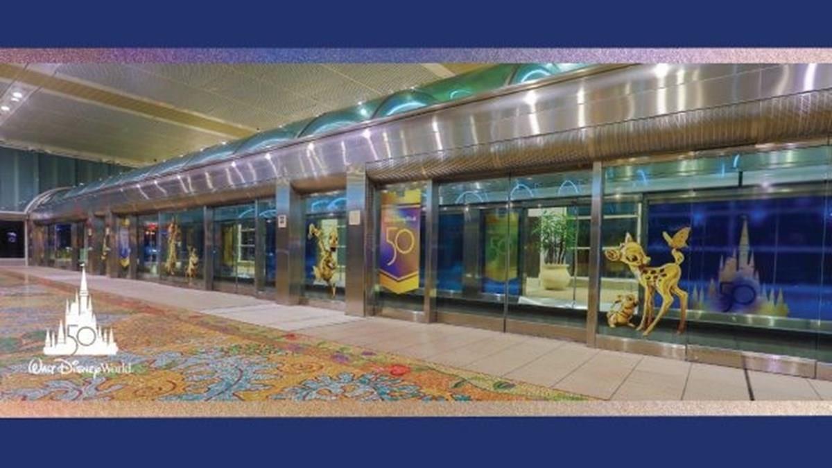 Entre os toques da Disney no aeroporto, está uma instalação de arte nas estações de trem dos terminais apresentando a Disney Fab 50 Character Collection, uma oportunidade de foto com uma xícara de chá dourada, inspirada na atração Mad Tea Party no Magic Kingdom Park, e um brilho cintilante de padrões de luz EARidescent projetados envolvendo os passageiros enquanto eles caminham pelo terminal do aeroporto do lado de fora da loja Magic of Disney no East Hall.