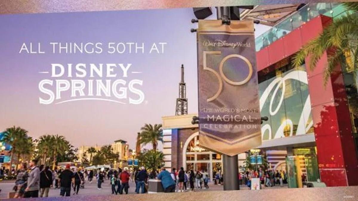 No Disney Springs, os visitantes encontrarão mais de 100 destinos de varejo, muitos com criações distintas da Disney, roupas exclusivas, bem como itens de celebração do 50º aniversário. Coleções especiais de mercadorias podem ser encontradas enquanto durarem os estoques no World of Disney, Marketplace Co-Op e outros locais de Disney Springs.