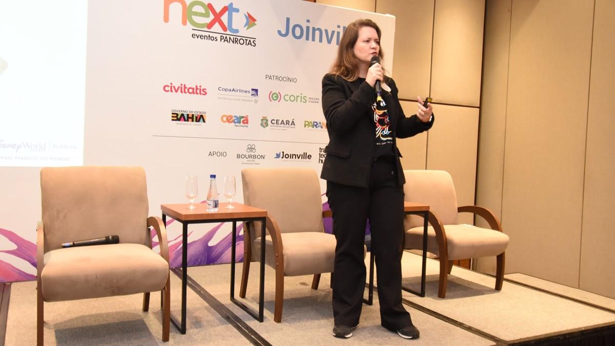 JOINVILLE (SC) - Agentes de viagens e demais profissionais do Turismo que participam do PANROTAS Next puderam hoje (18) voltar a conhecer detalhes da oferta Disney Destinations. Assim como aconteceu no ano passado, a companhia participa, por meio de sua gerente de Treinamentos, Thais Ramos, do evento itinerante da PANROTAS, agora apresentando uma visão detalhada dos parques temáticos e das melhores opções de hospedagem.