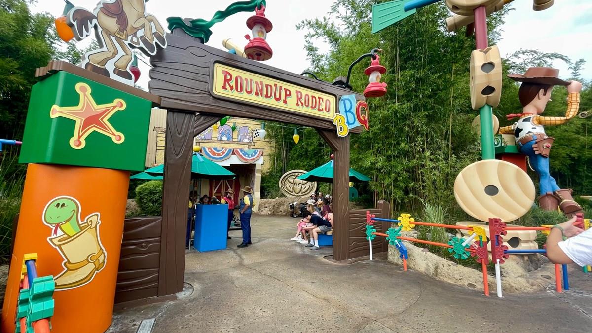 A proposta do Roundup Rodeo BBQ é transportar os frequentadores para uma divertida arena de rodeio, criada por Andy (personagem dono dos brinquedos de Toy Story) a partir de caixas de papelão. O ambiente é decorado com uma variedade de brinquedos icônicos da história.