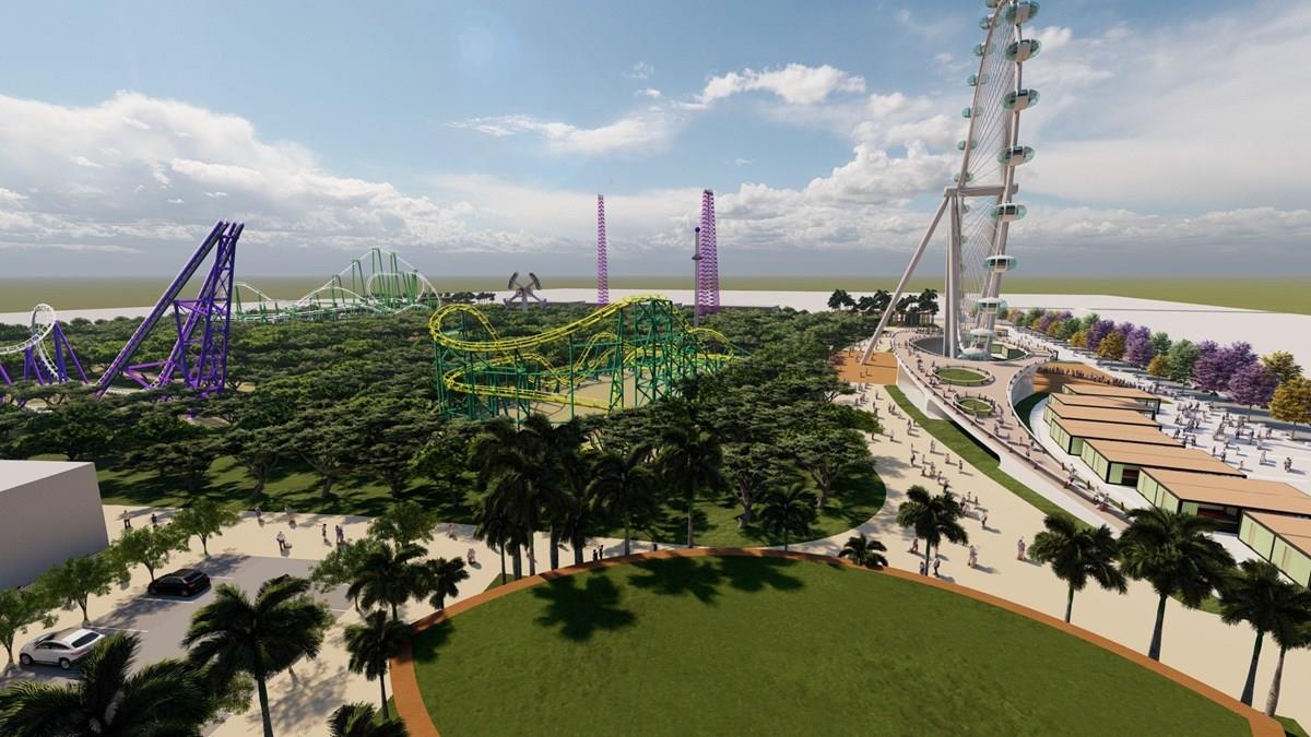 O complexo ostentará uma torre hoteleira de 480 apartamentos, um Outlet Open Mall, com lojas de marcas renomadas, uma roda-gigante panorâmica de 80 metros, Vila Gastronômica, Espaço Games, com experiências imersivas de última geração, e um espaço de Shows e Eventos.