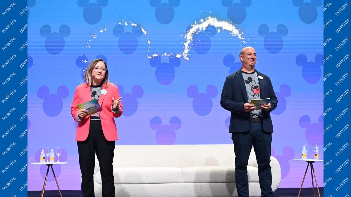 A Disney Destinations e o Disney Institute subiram no palco do Fórum PANROTAS 2025 para apresentar as novidades dos destinos Disney e os destaques do programa de treinamento e desenvolvimento para profissionais externos.