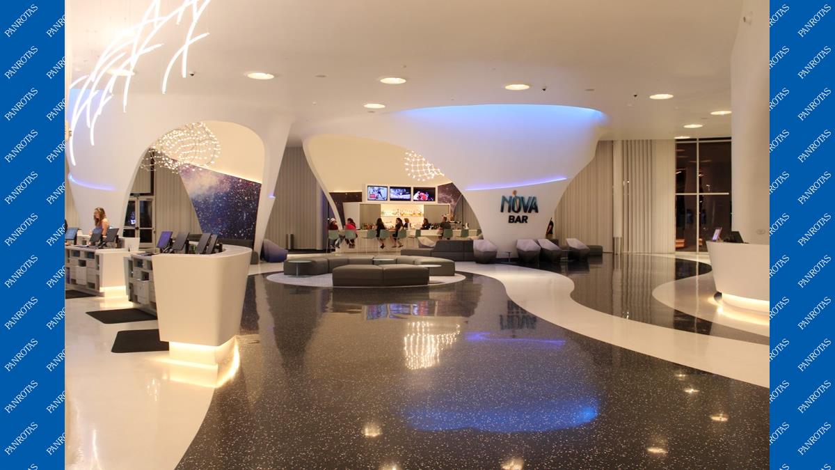 É o Stella Nova Resort, aberto agora em janeiro, que recebe toda a delegação. Estamos hospedados neste hotel que ainda tem cheirinho de novo e o chão brilhando. Todo tecnológico, o hotel é inspirado pela imensidão do universo e está localizado bem ao lado do Epic Universe. Em breve, vamos trazer todos os detalhes do Stella Nova Resort em uma matéria super bacana. Fique ligado!