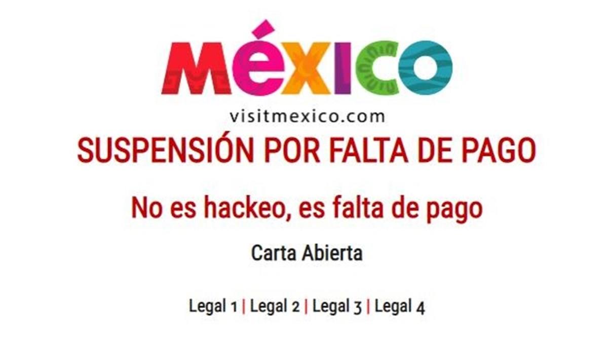 O site de Turismo do México, www.visitmexico.com, está fora do ar desde a semana passada (quinta-feira, 23) e nele consta uma mensagem de que se trata de falta de pagamento. A Secretaria de Turismo do país informou que, desde maio de 2019, assinou convênio com a empresa Braintivity para administrar e operar a plataforma e que está buscando explicações. Uma explicação postada no Twitter do Visit Mexico (@visitmex) é de que a página teria sido hackeada.
