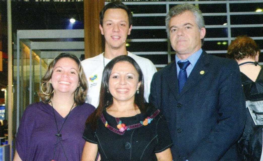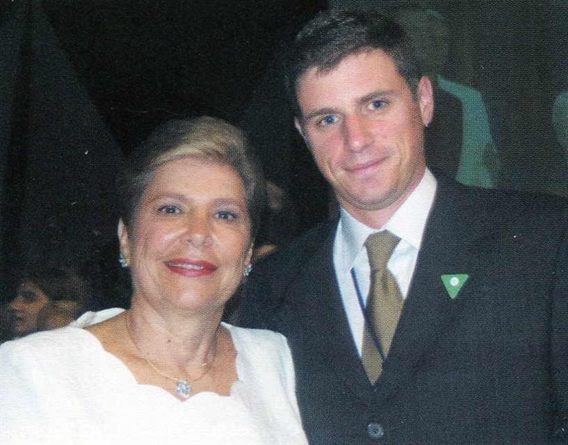 2001: Mãe e filho assistindo ao discurso do marido e pai: Rossette Guimarães e Luciano Guimarães, o Luti