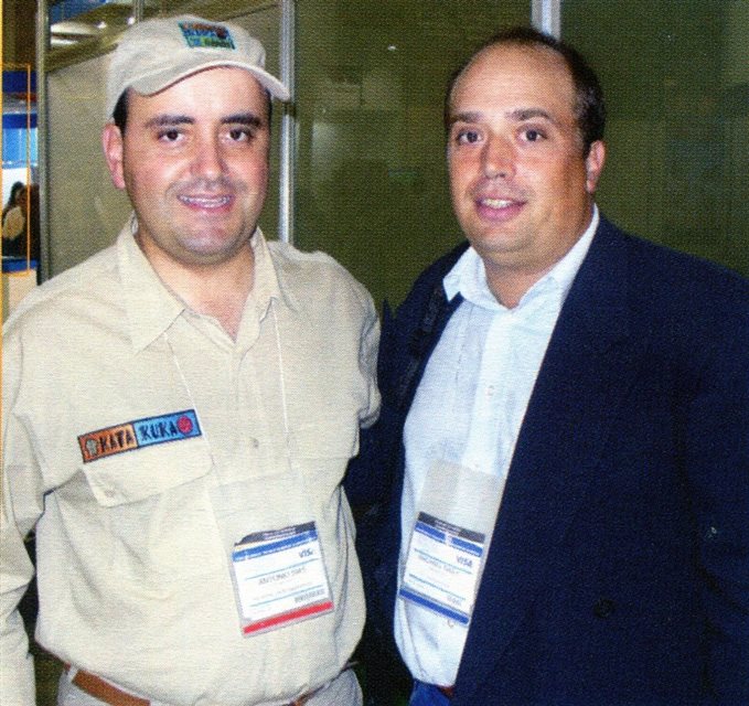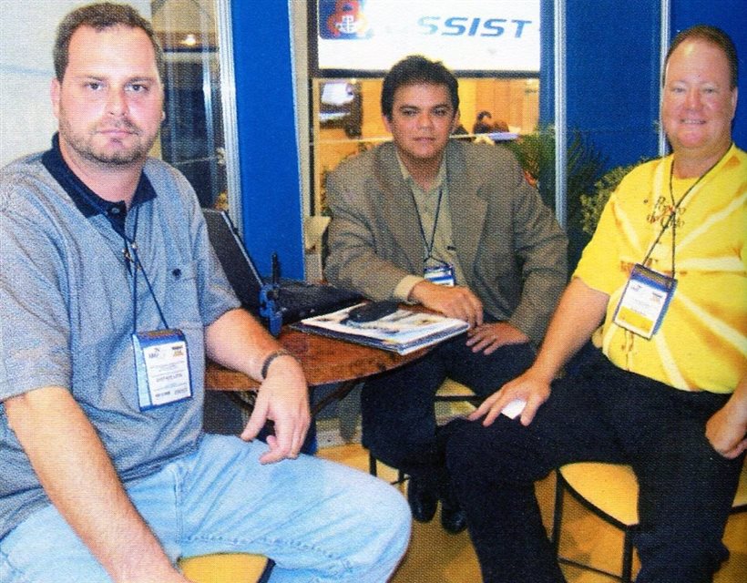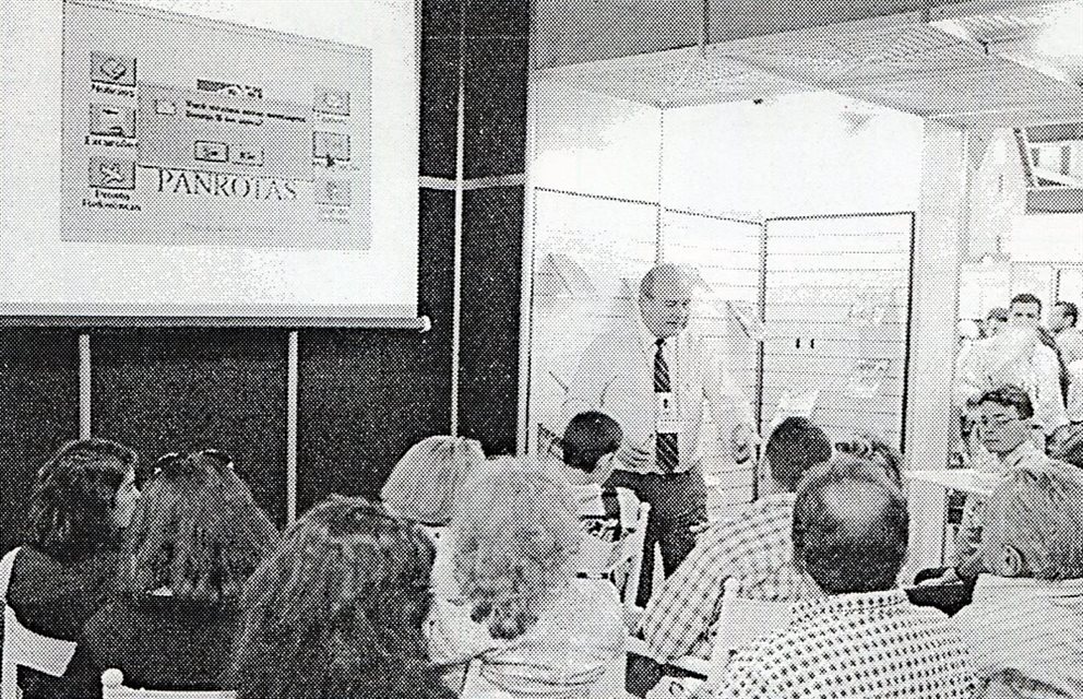 2001: O presidente da PANROTAS Editora, José Guillermo Condomí Alcorta, demonstra pessoalmente à diretoria da Voetur, incluindo o presidente Carlos Alberto de Sá, o Sistema de Reservas On-Line do Guia PANROTAS