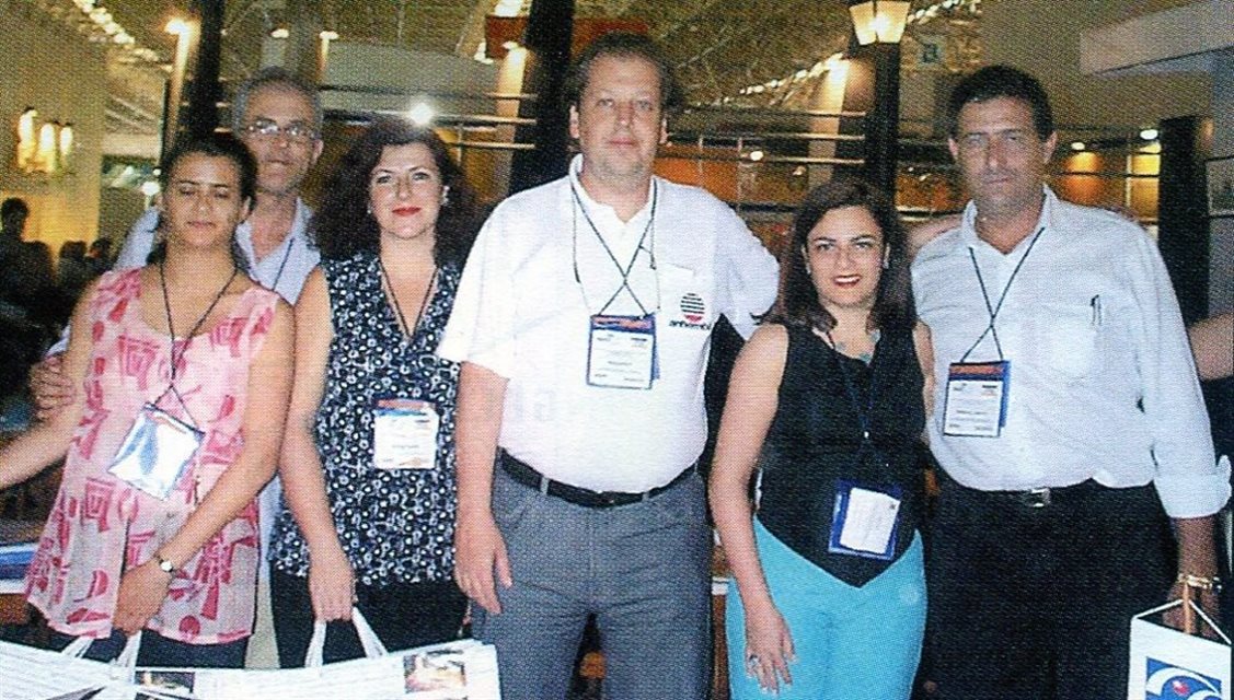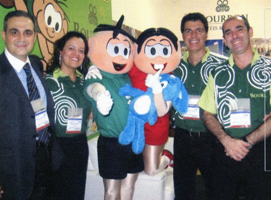 Estande Bourbon Hoteis e Resorts com Alceu Vezozzo e a equipe formada por Cristina Cunha, Cebolinha, Mônica, Jaime Santos e Heber Garrido, na Abav de 2006, no Rio de Janeiro