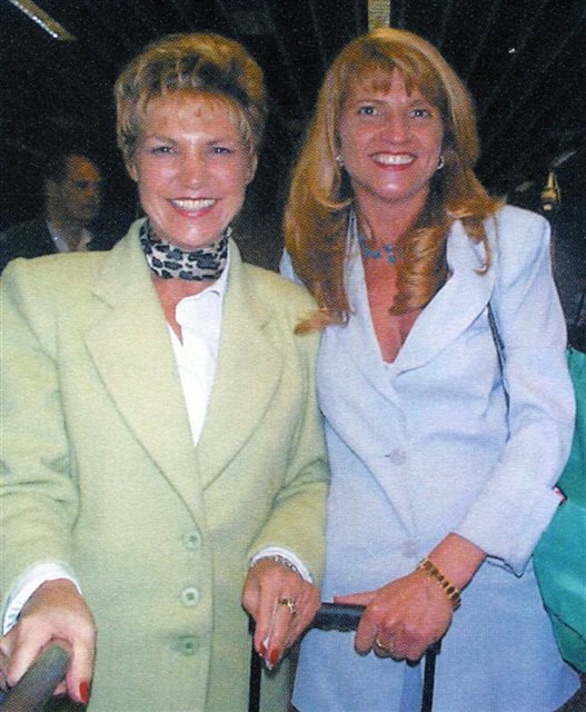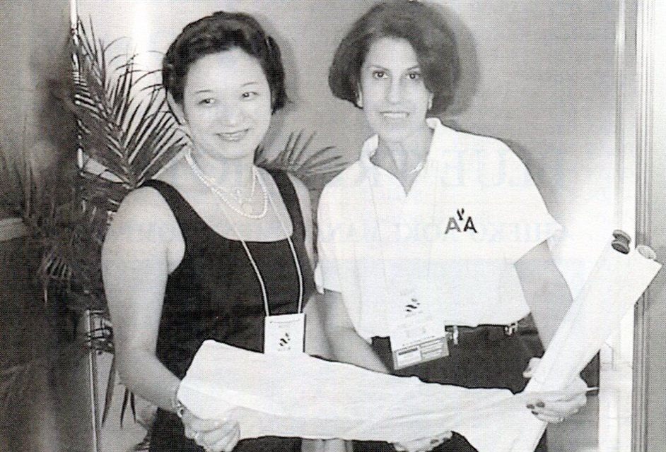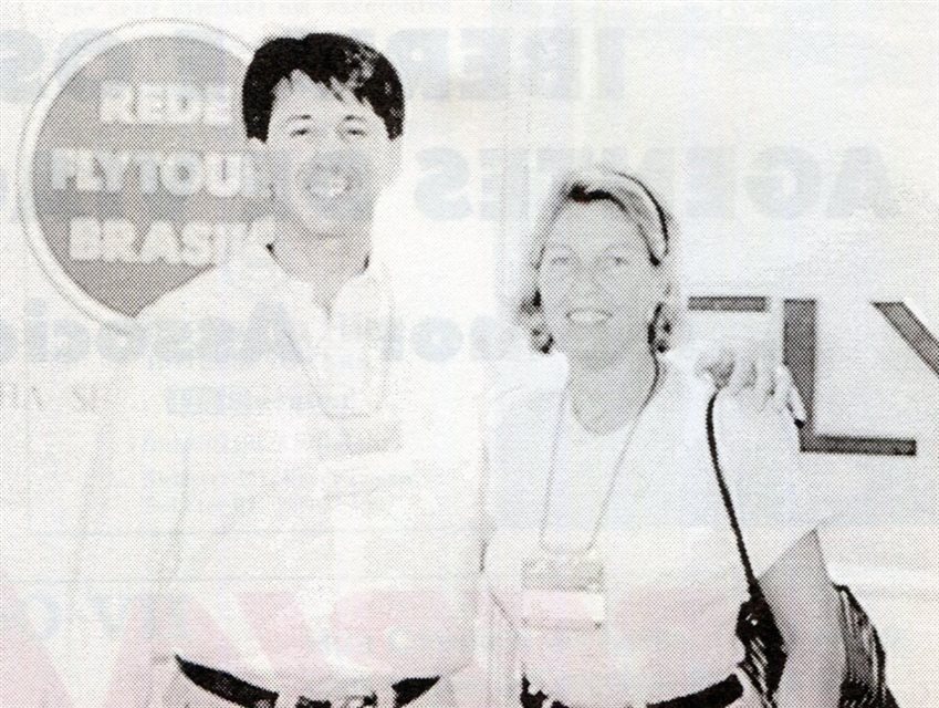 1998: Julia Yamanishi, promotora da American Airlines em São Paulo e responsável pelo projeto do estande, acompanhada de Angela Belluco, diretora de Vendas da aérea