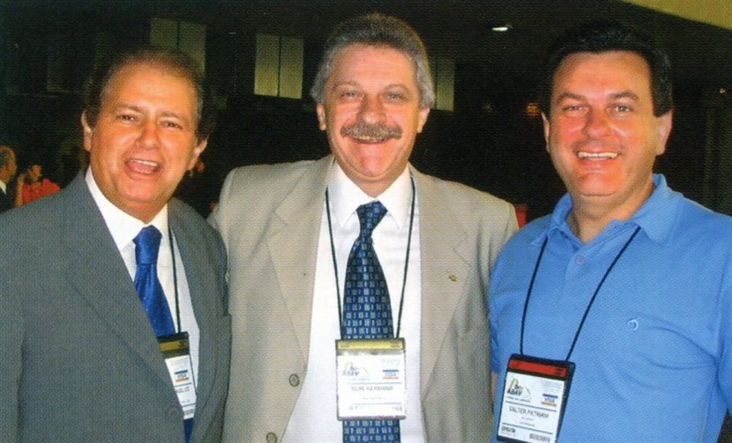 2001: Goiaci Alves Guimarães ladeado pelos candidatos à sua sucessão: Luis Felipe Bonilha e Tasso Gadzanis
