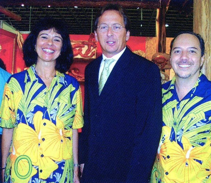 2003, Rio de Janeiro: Janyck Daudet entre Sylvia Leimann e Marco Antonio Oliva, todos do Club Med