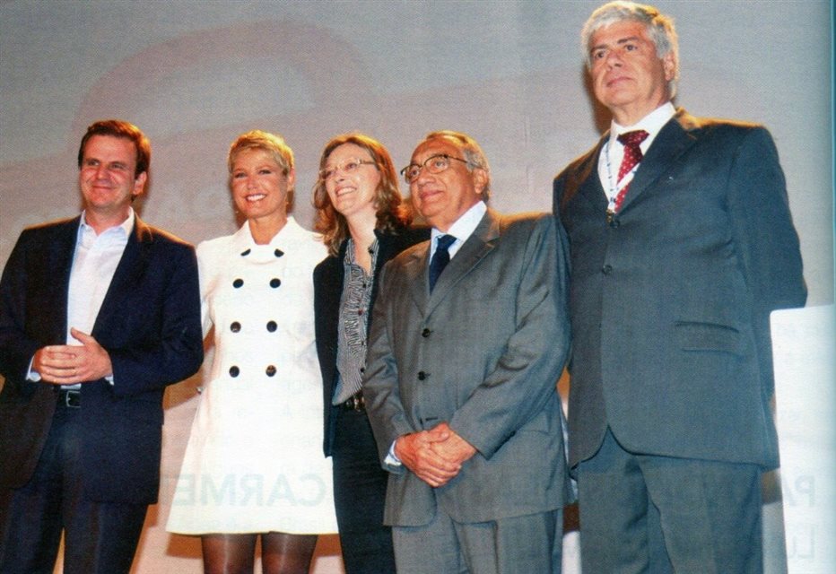No palco, durante a cerimônia; o prefeito do Rio, Eduardo Paes, a apresentadora Xuxa Meneghel, a ministra de Direitos Humanos, Maria do Rosário Nunes, o ministro do Turismo, Gastão Vieira, e o presidente da Abav, Carlos Alberto Amorim Ferreira