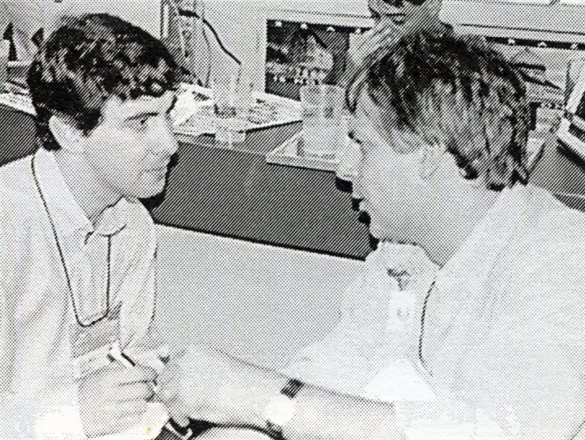 1989: Ilya Hirsch (Oremar) com Ana Maria (Springer-Porto Alegre), na feira em Fortaleza