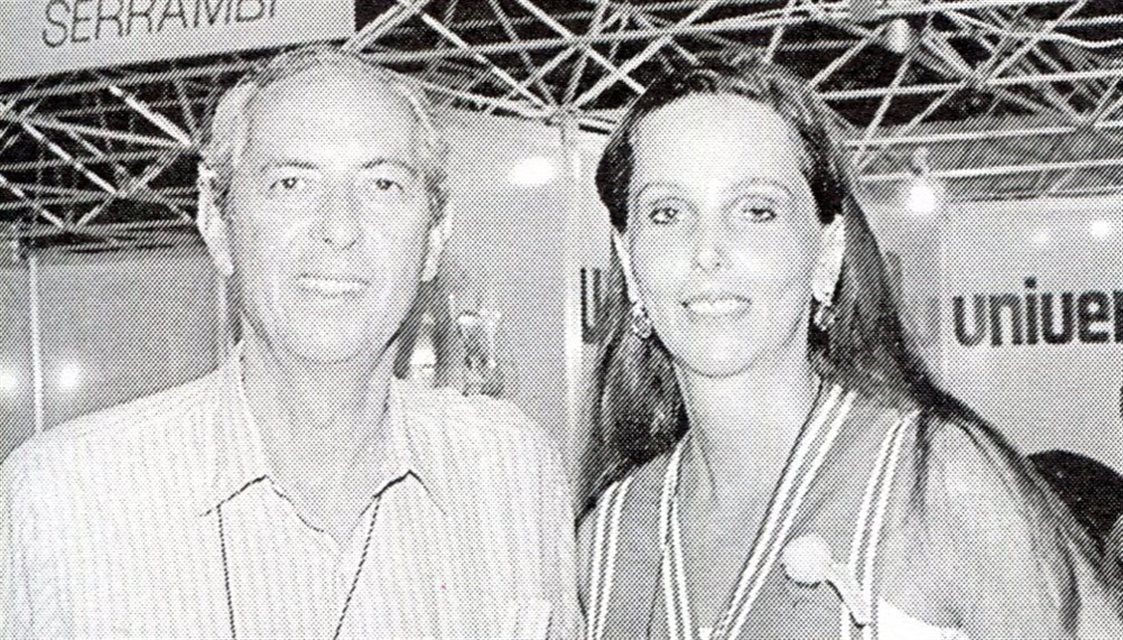 Rosana e Ricardo Lopes no estande da TouristCard Assistance da feira da Abav de 1991, em Salvador